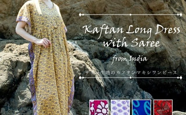 女性(衣類・靴)サリー生地のカフタンマキシワンピース / ガラベーヤ インド ドレス パーティー スリット ロングワンピース TIRAKITA(ティラキタ) 袖なし(ノースリーブ) レディース エスニック アジアン 女性 トップス エスニック衣料 アジアンファッション エスニックファッション