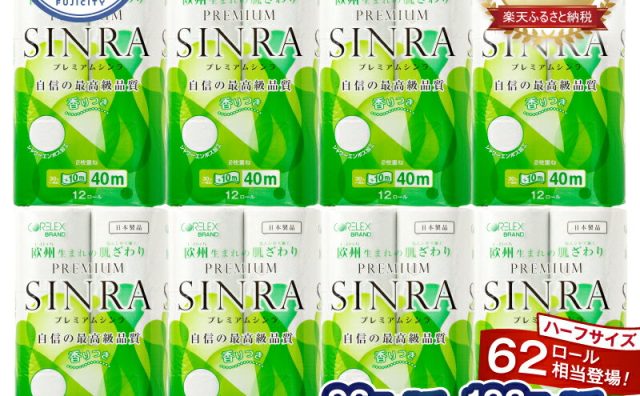 トイレ用具【ふるさと納税】\年間ランキング トイレットペーパー最上位!/ 128/256ロール相当 トイレットペーパー ダブル プレミアムシンラ 96/192ロール (12R×8/16P) 長持ち 香り 消臭 再生紙 備蓄 生活 日用品 人気 総合 ランキング 1位 送料無料 富士市[sf001-012][sf001-017]
