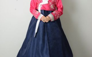 黄緑色と鮮やかなピンクのチマの組み合わせ・袖先のセットンが目を引きます。